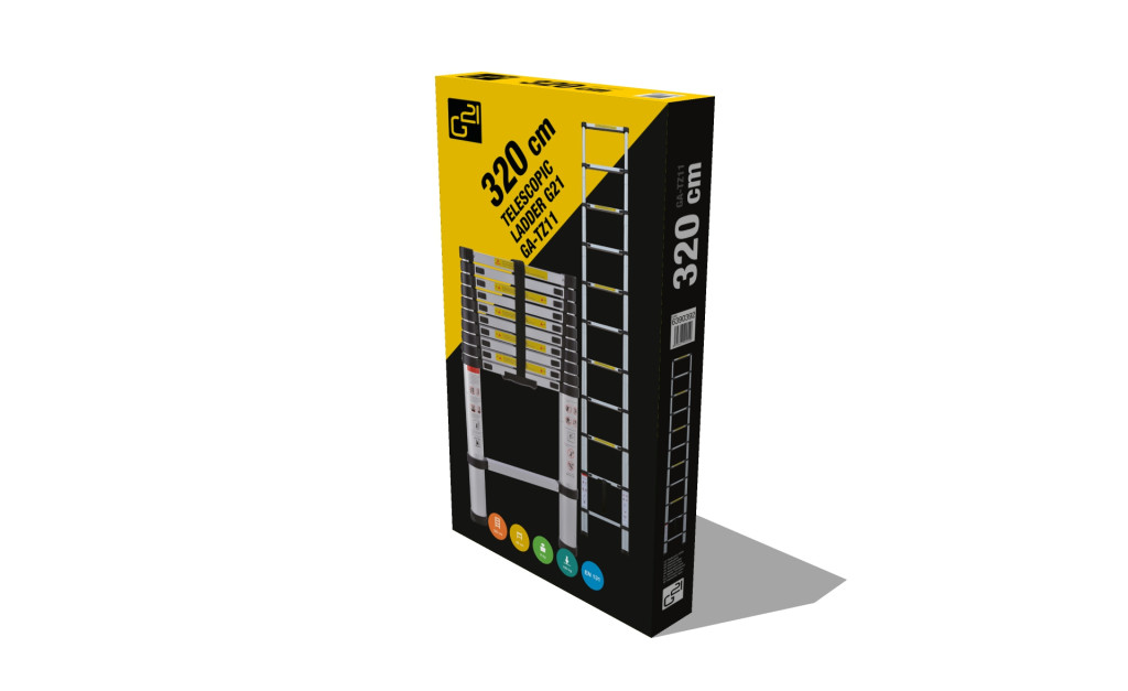 A G21 GA-TZ11-3,2M teleszkópos létra súlya 9,3 kg, maximális hossza 3,2 m és összecsukott állapotban 0,8 m magas. Szakemberek számára volt tervezve és elegendően merev és ellenálló a szerkezete a duralprofil rendszernek köszönhetően. Teherbírása 150 kg.