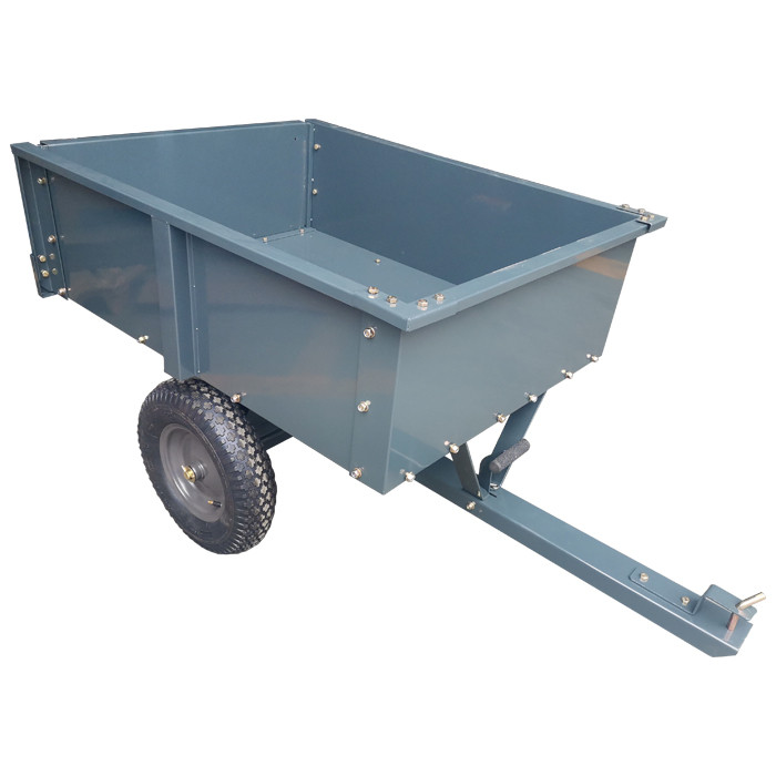 Sokoldalú és masszív pótkocsi, amelyet fűnyíró traktorokhoz terveztek, ideális ágak-gallyak, szerszámok vagy kerti törmelék szállítására.