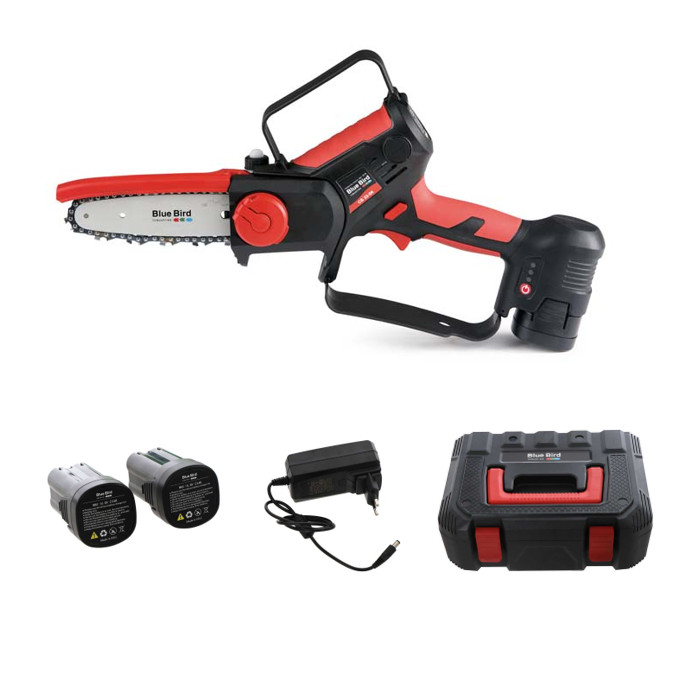 A Bluebird gépek és tartozékok teljes skáláját gyártja kertgondozáshoz és -fenntartáshoz, erdészeti munkákhoz és mezőgazdasághoz 1978-óta az olaszországi Zané-ban. Erőteljes gép párosul a könnyű önsúllyal. A csomag része 1db CS 22-04 akkus ágvágó láncfűrész és 1db PS 22-23 akkus metszőolló. A láncfűrész 100mm-es ágak vágására is alkalmas, a kisebb ágakhoz pedig a metszőólló a tökéletes társ.