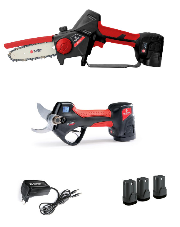 A Bluebird gépek és tartozékok teljes skáláját gyártja kertgondozáshoz és -fenntartáshoz, erdészeti munkákhoz és mezőgazdasághoz 1978-óta az olaszországi Zané-ban. Erőteljes gép párosul a könnyű önsúllyal. A csomag része 1db CS 22-04 akkus ágvágó láncfűrész és 1db PS 22-23 akkus metszőolló. A láncfűrész 100mm-es ágak vágására is alkalmas, a kisebb ágakhoz pedig a metszőólló a tökéletes társ.