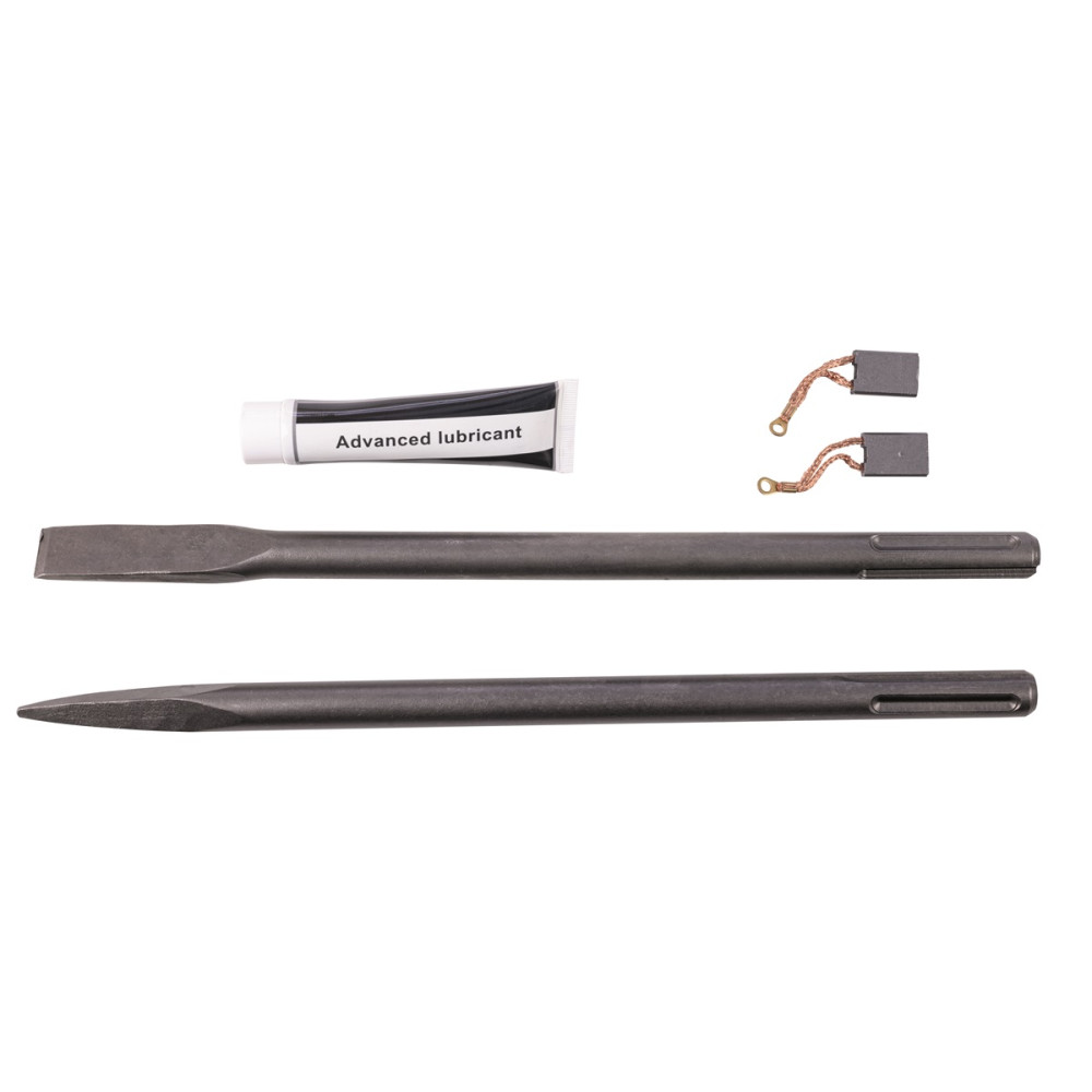 A gép standard tartozéka még a kenőzsír, tartalék szénkefék, imbuszkulcs, egy lapos és egy hegyes vésőszár.