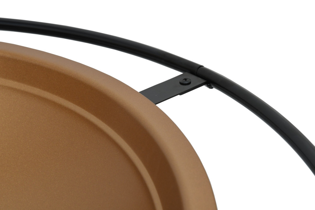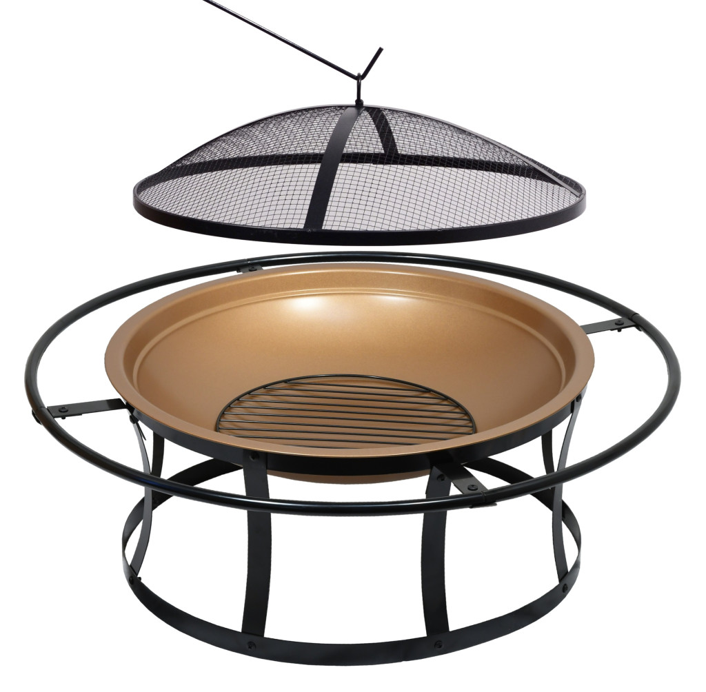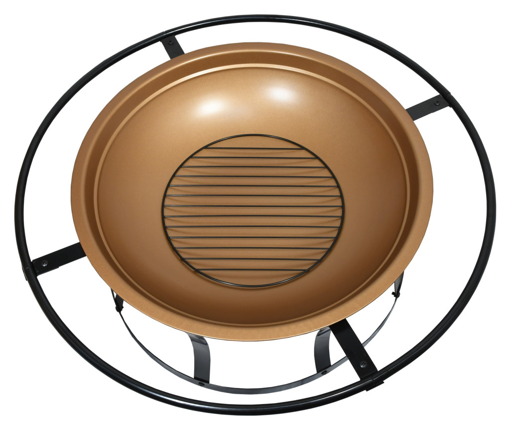 A tűztér szerkezete kiváló minőségű acélból készült, magas hőmérsékletálló fekete és sárgaréz bevonattal. Használja a peremgyűrűt fogantyúként a könnyű hordozáshoz. Az összekötött lábak nagyobb stabilitást adnak a tűztérnek, így nem borul csak úgy fel.