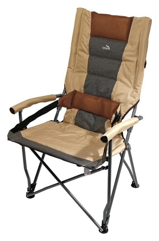 Pihenj a vízparton, vidéken, kempingben, zenei fesztiválon, vagy csak üldögélj egy kicsit a friss levegőn a kertben. A Cattara GRANT összecsukható szék kényelmet biztosít. Dőlj hátra a minőségi varrott párnázott huzaton, tedd a kezed a kényelmes fogantyúkra és támaszd a hátad a háttámlának. A háttámla párnával van ellátva. A hevederek segítségével állítsa be az ideális magasságot a maximális kényelem érdekében. A szék jobb oldalán egy praktikus hálós aljú ital tartó is található.