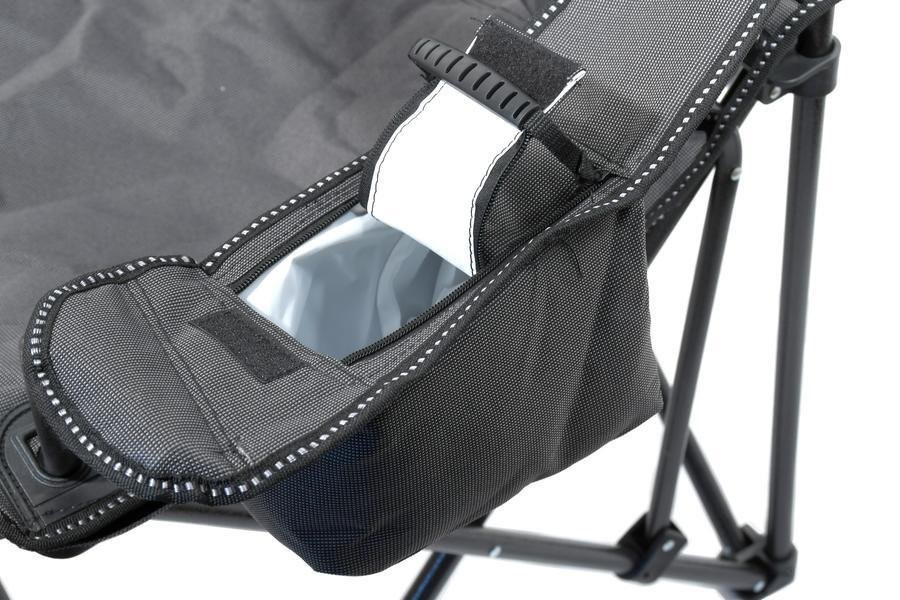 Pihenj a vízparton, vidéken, kempingben, zenei fesztiválon, vagy csak üldögélj egy kicsit a friss levegőn a kertben. A Cattara MERIT XXL összecsukható szék bőséges kényelmet nyújt. Dőlj hátra a jól varrott kárpiton, pihentesd kezed a párnázott fogantyúkon, és támaszd hátad a háttámlának. Az egyik karfán még egy italtartó is található. A másik pedig egy praktikus zsebbel van ellátva kisebb holmiknak.