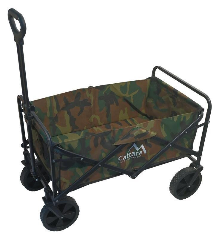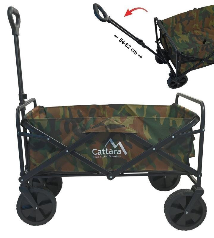 Kempingezni vagy sátor alá menni a természetbe. Többé nem kell a dolgait a kezedben vagy hátizsákban a hátadon cipelned. Helyezze őket a praktikus Cattara TROGIR ARMY összecsukható kocsiba. Rengeteg tárgy, alapanyag és poggyász elfér benne, és akár 50 kg-ot is elbír.