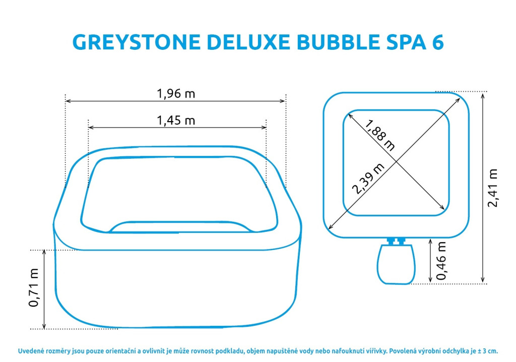 Hosszú napja volt, és egy kis minőségi pihenésre van szüksége? Lazítson és élvezze a kényelmet a Marimex Greystone Deluxe Bubble Spa 6 NP pezsgőfürdőben. Elhelyezheti kertjében, teraszán vagy bármilyen egyenletes felületen. Élvezze a nyugodt pillanatokat egyedül, vagy hívja meg szeretteit és barátait egy kellemes beszélgetésre. A jakuzziban akár 6 felnőtt személy is kényelmesen elfér.