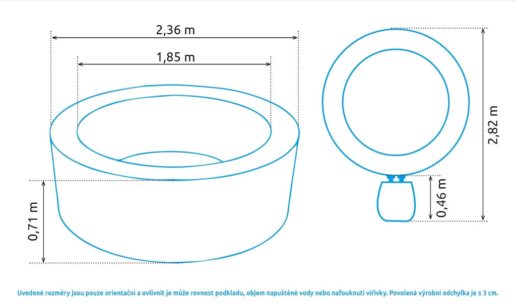 • Külső átmérő: 236 cm (vízzel töltve, tolerancia ± 5%)