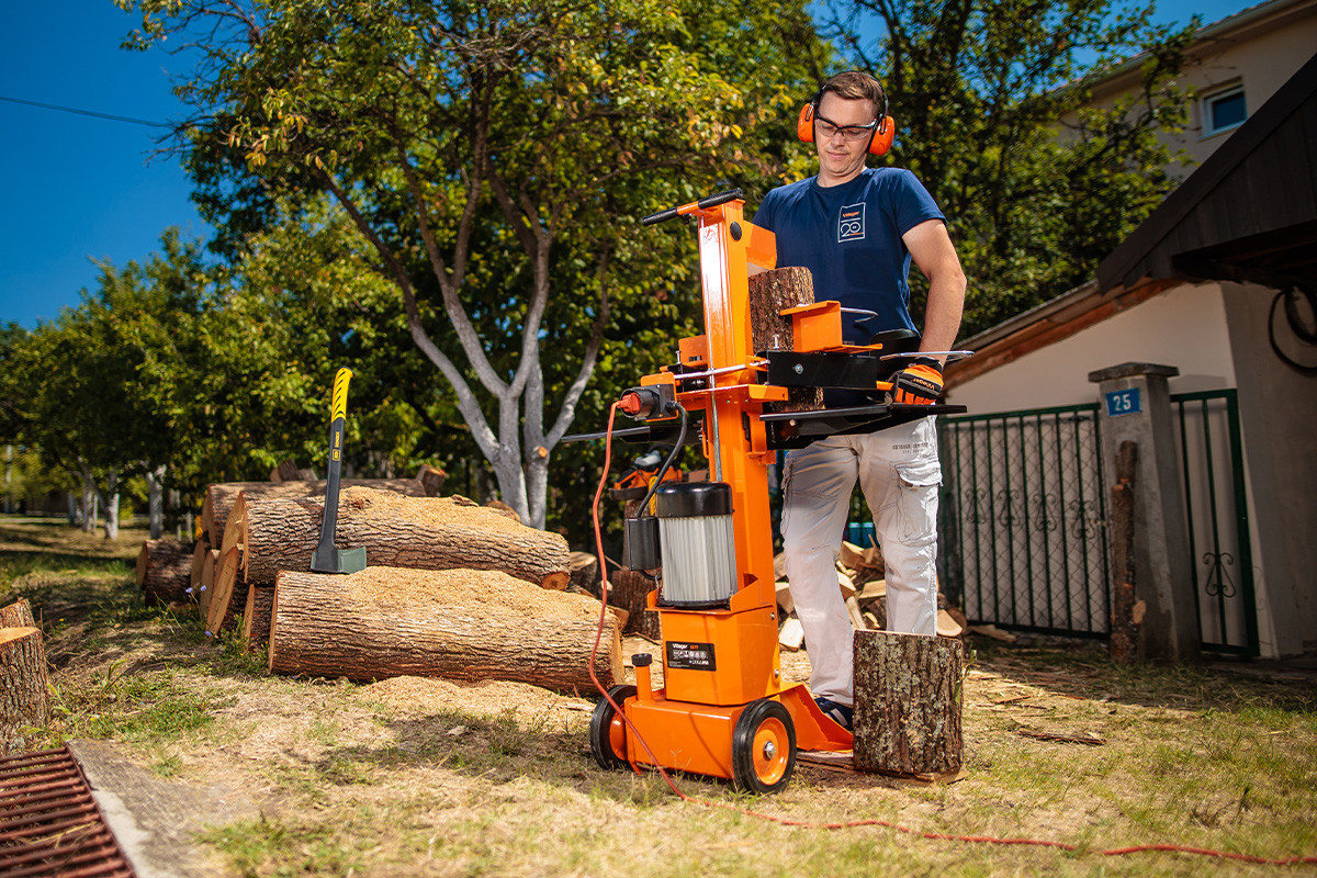 A készülék akár 55 cm hosszúságú és 8–30 cm átmérőjű farönkök feldolgozására is alkalmas, így ideális választás otthoni vagy kisebb gazdasági felhasználásra. A függőleges kialakítás kényelmes és biztonságos munkavégzést tesz lehetővé, a stabil szerkezet pedig megbízható működést biztosít hosszabb használat során is.