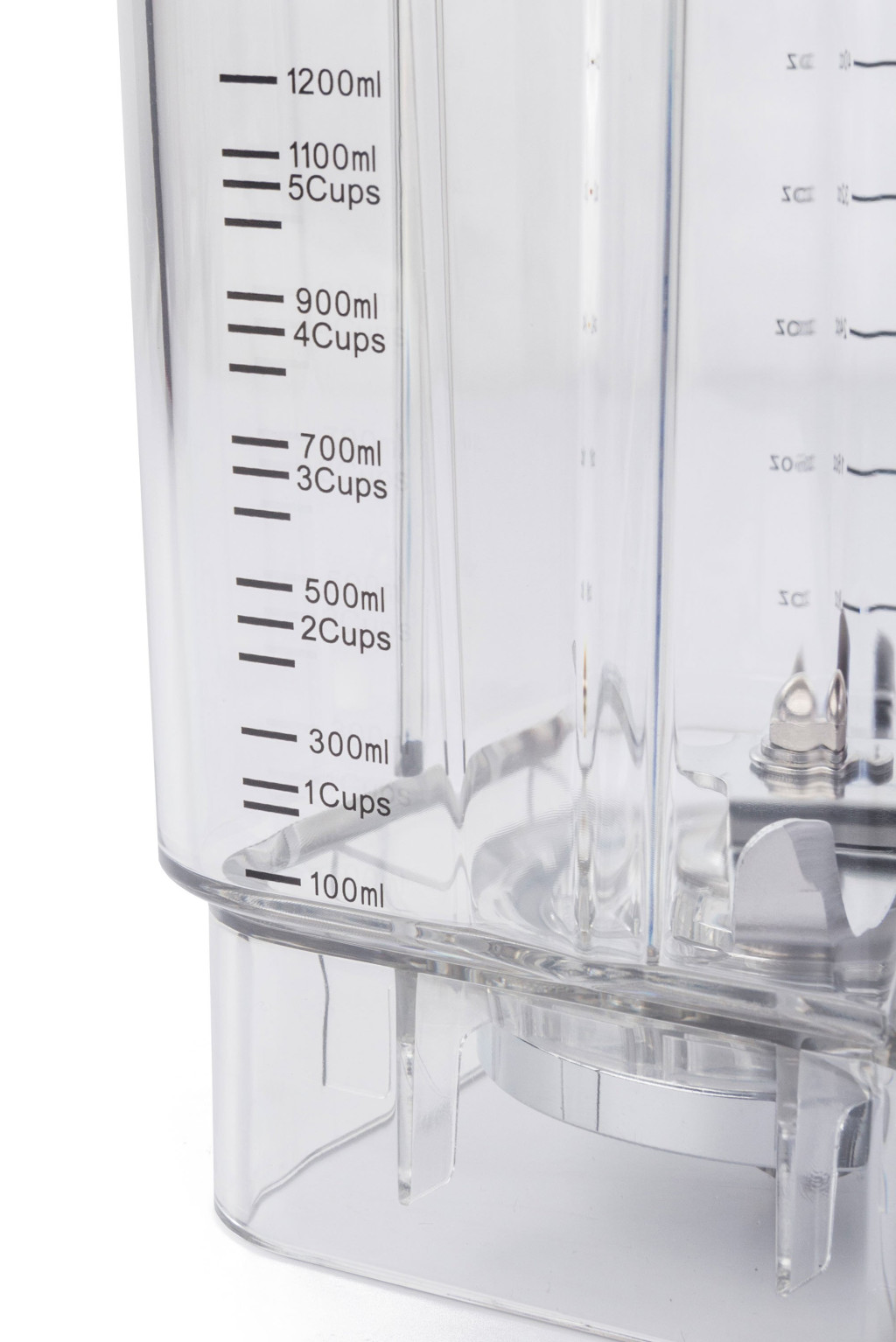 Tartalék tartály a Blender G21 Ultimate turmixgépekhez, 1,2 l térfogatú, 0,8 kg súllyal és 24 x 15 x 15 cm méretekkel. A tartály új késsel, és kis és nagy fedéllel rendelkezik.