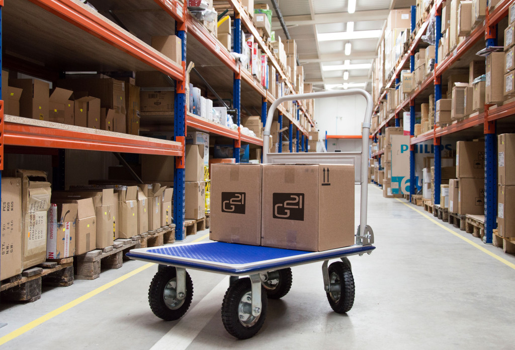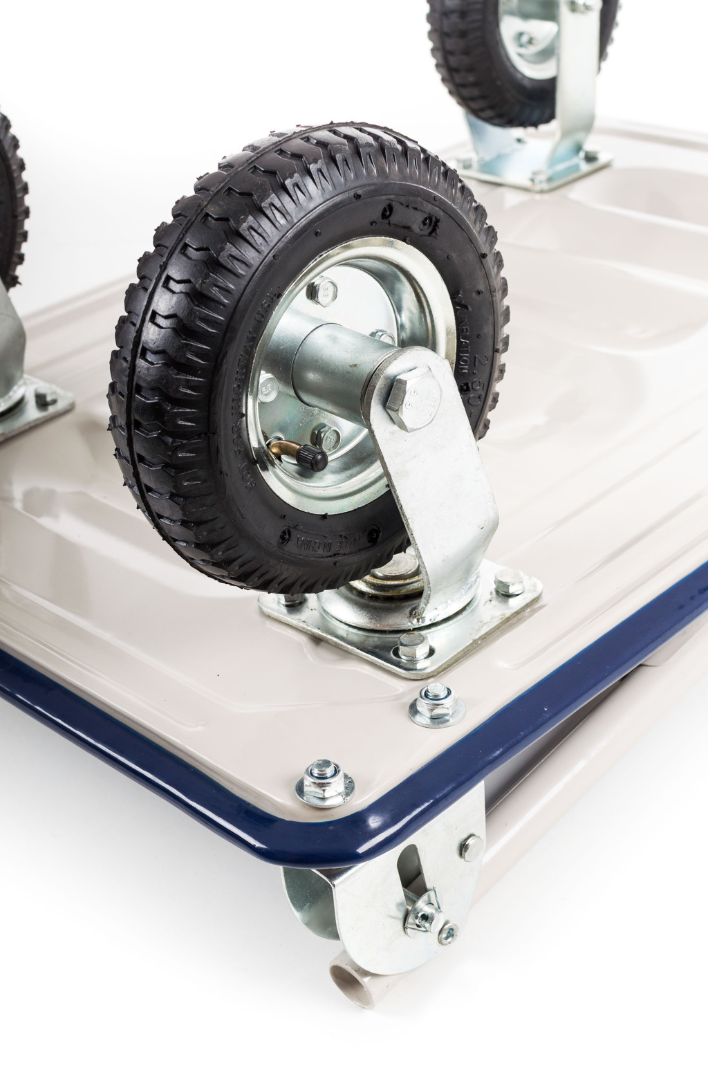 A G21 raktárkocsi 4 felfújható gumiból készült kerékkel rendelkezik, melyek nem hagynak maguk után fekete csíkot, így nem rongálják a padlót. Így ideális akár költözéseknél is.