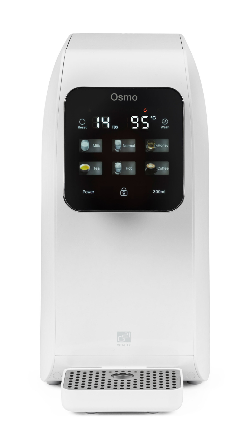 A G21 Osmo segítségével a napi vízkészítés gyors és kényelmes feladattá válik. A nagy teljesítményű rendszernek és az átgondolt kialakításnak köszönhetően a víz pontosan úgy készül el, ahogyan szüksége van rá – mindössze néhány másodperc alatt.