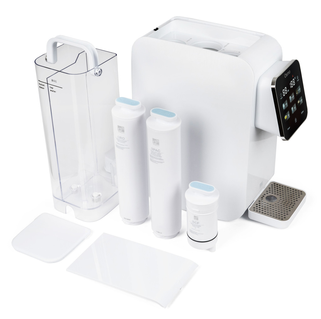 Gondoskodjon a legjobb minőségű vízről otthonában a G21 Osmo forradalmi fordított ozmózis rendszerrel. Ez a praktikus segédeszköz tökéletes tisztaságig szűri a vizet, és eltávolítja a nemkívánatos anyagok akár 99%-át, mint például a nehézfémek, antibiotikumok, vegyszerek, mikroműanyagok és baktériumok, majd ásványi anyagokkal gazdagítja. A G21 Osmo modern dizájnnal és olyan funkciókkal rendelkezik, amelyek megkönnyítik az egész család mindennapjait.