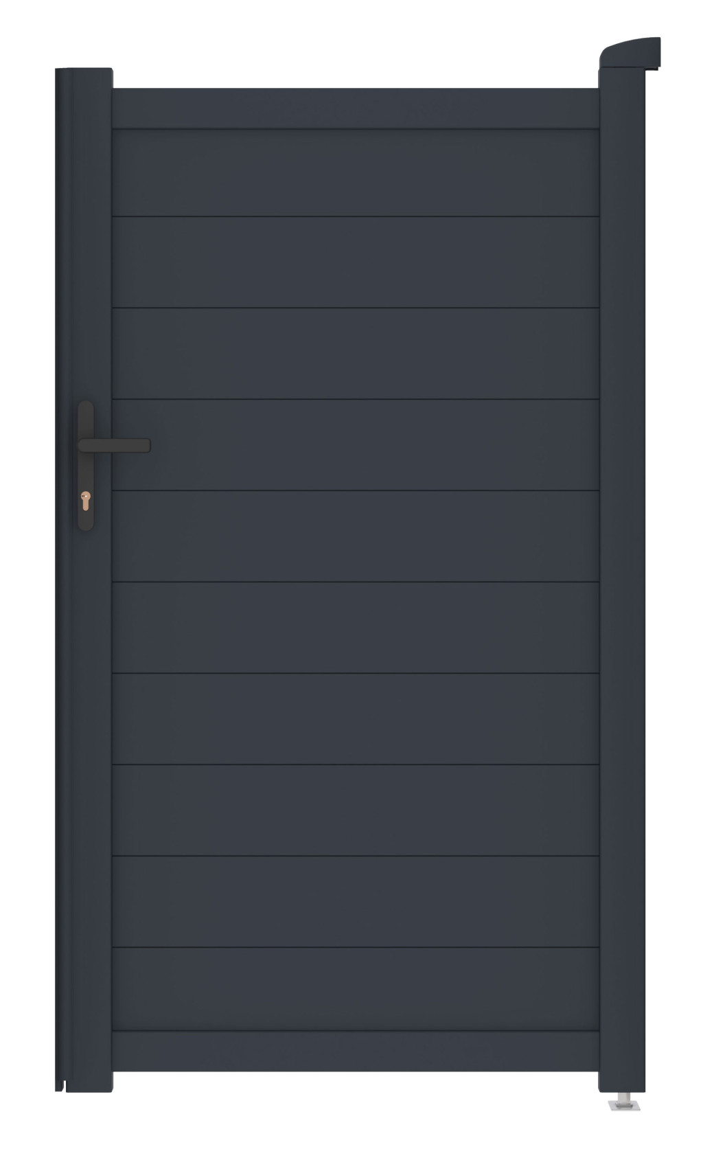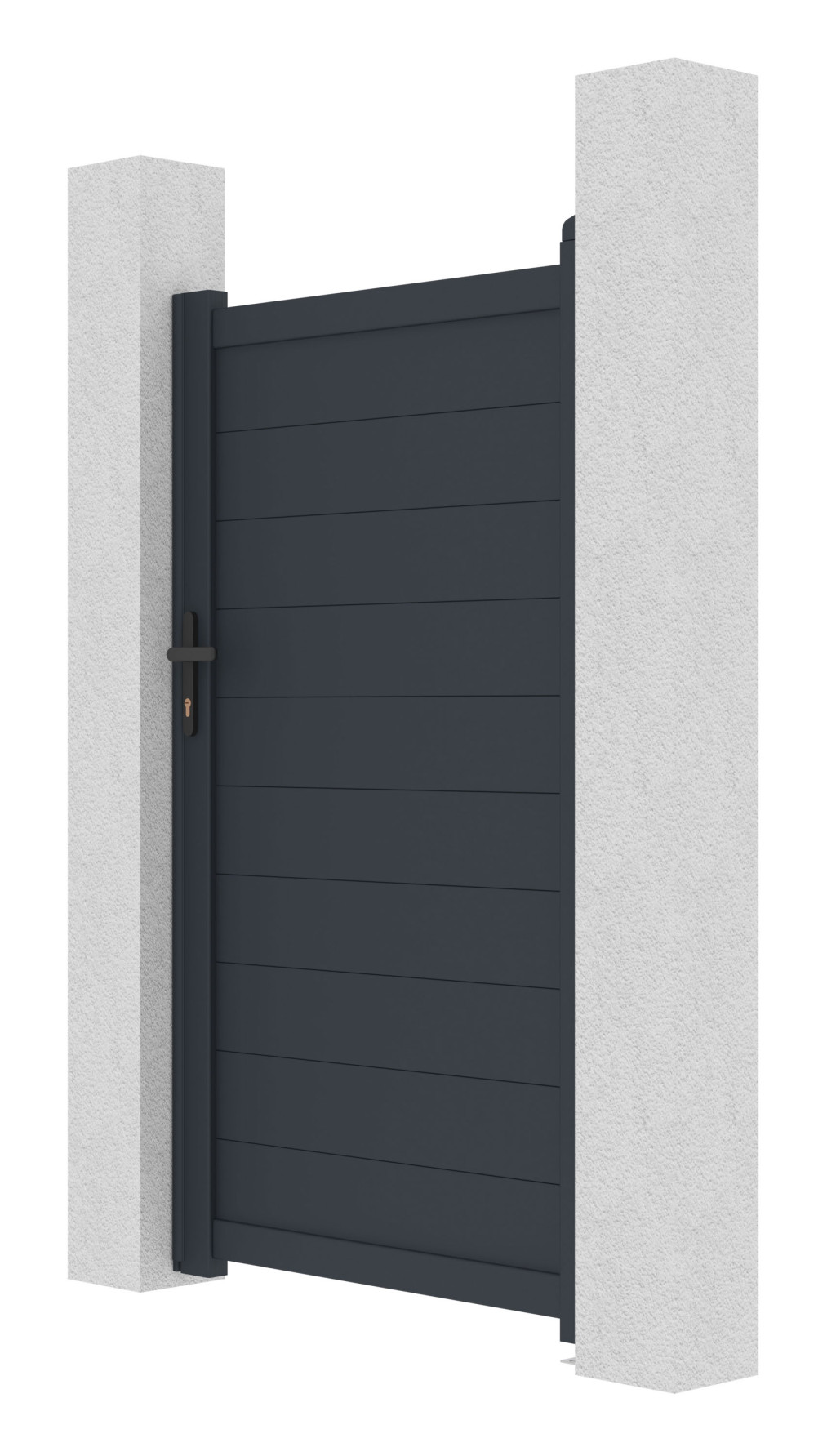 A vízszintesen elhelyezett lamellák grafitszürke színben eleganciát és magánéletet biztosítanak. A belső nyílású kialakítás minden típusú építményhez tökéletesen illik.