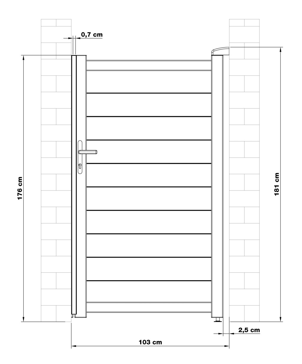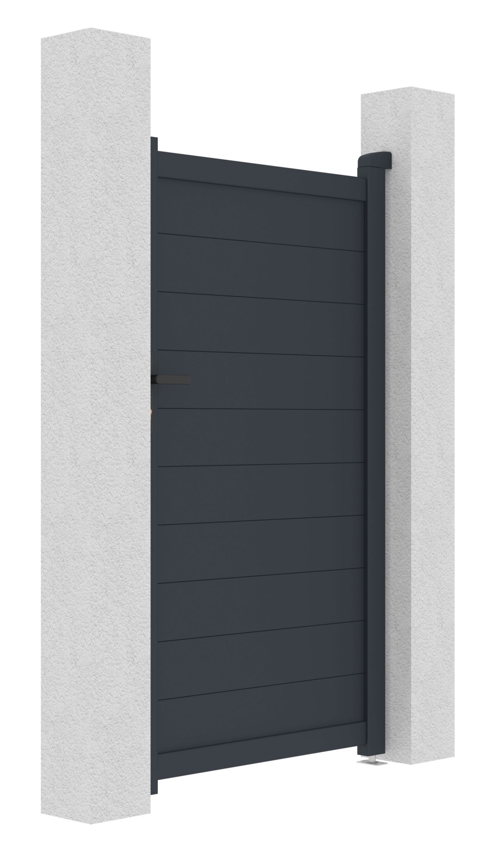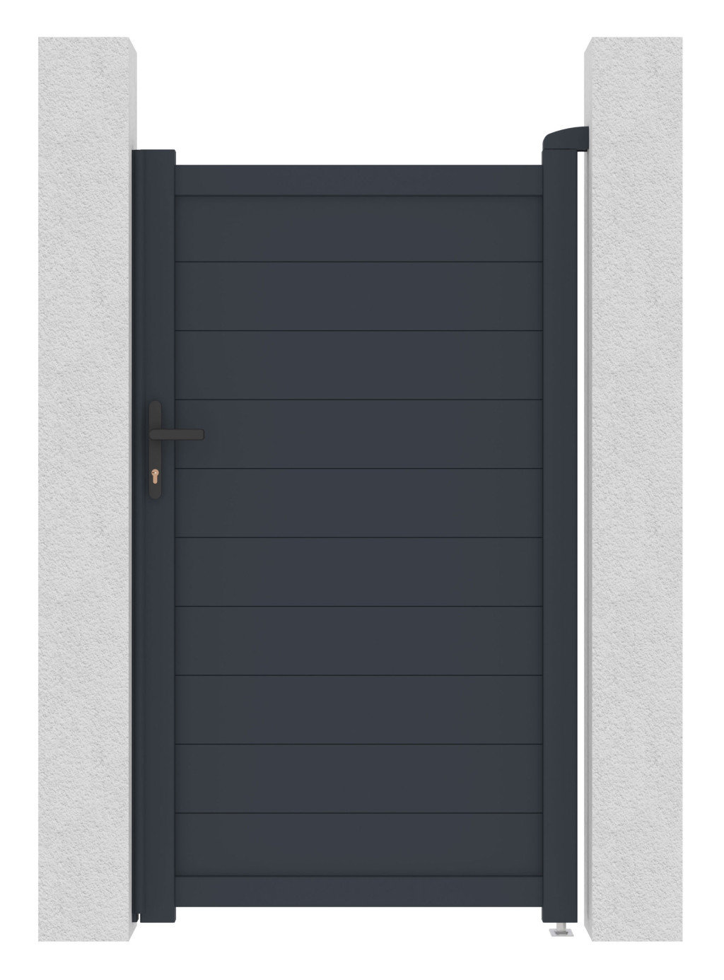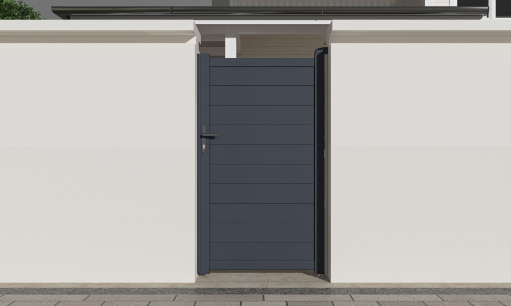 Zárható alumínium bejárati kapu balos nyitással. Tartalmazza a kilincset és cilinderzárat (FAB), befelé nyíló kivitelben. Ellenálló, hosszú élettartamú, porszórt felületkezeléssel. Lehetőség van a szélesség egyedi méretre szabására is.