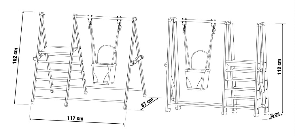 Nem számít, hogy esik az eső vagy süt a nap, a gyerekek minden időben élvezhetik a hintát. A kompakt méreteknek és a könnyű szerkezetnek köszönhetően a hintát könnyen áthelyezheti a lakásból a kertbe, vagy kényelmesen elteheti a garázsba. A szerkezet része egy létra is, amely további játék lehetőséget biztosít és támogatja a gyermekek mozgásfejlődését.