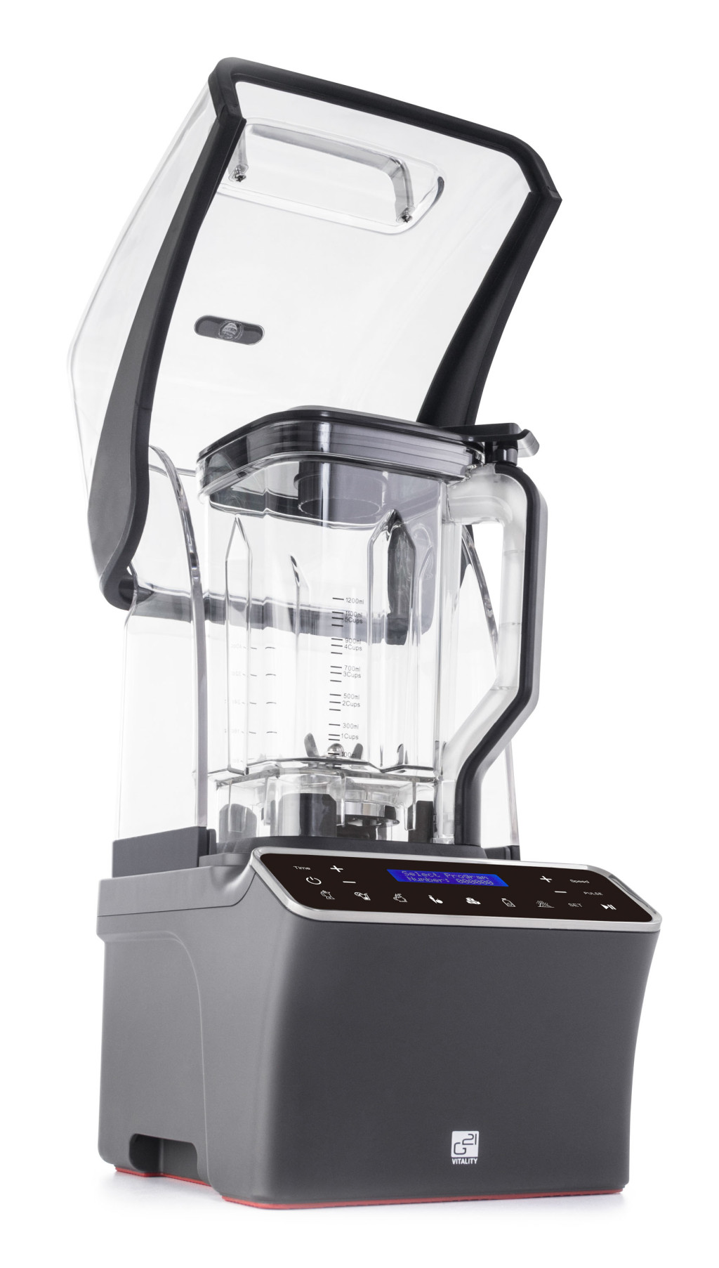 Multifunkciós vákuumasztalos keverő, 1 500 W, 28 000 fordulat/perc, 1,2 l-es tartály, érintőképernyő, előre beállított keverőprogramok, kever, aprít és őröl, hangszigetelt fedél, biztonsági zár. Tritan kopoliészter, fém fogaskerekek. Grafit fekete.