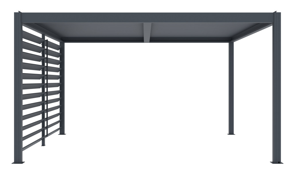 A forgatható lamellás oldalfal tökéletes kiegészítője az Austin pergolának. Maximális rugalmasságot, védelmet és kényelmet nyújt – a variálható, forgatható lamellák segítségével könnyedén beállíthatja a kívánt árnyékolási szintet, a magánszférát, illetve a védelmet eső és szél ellen.