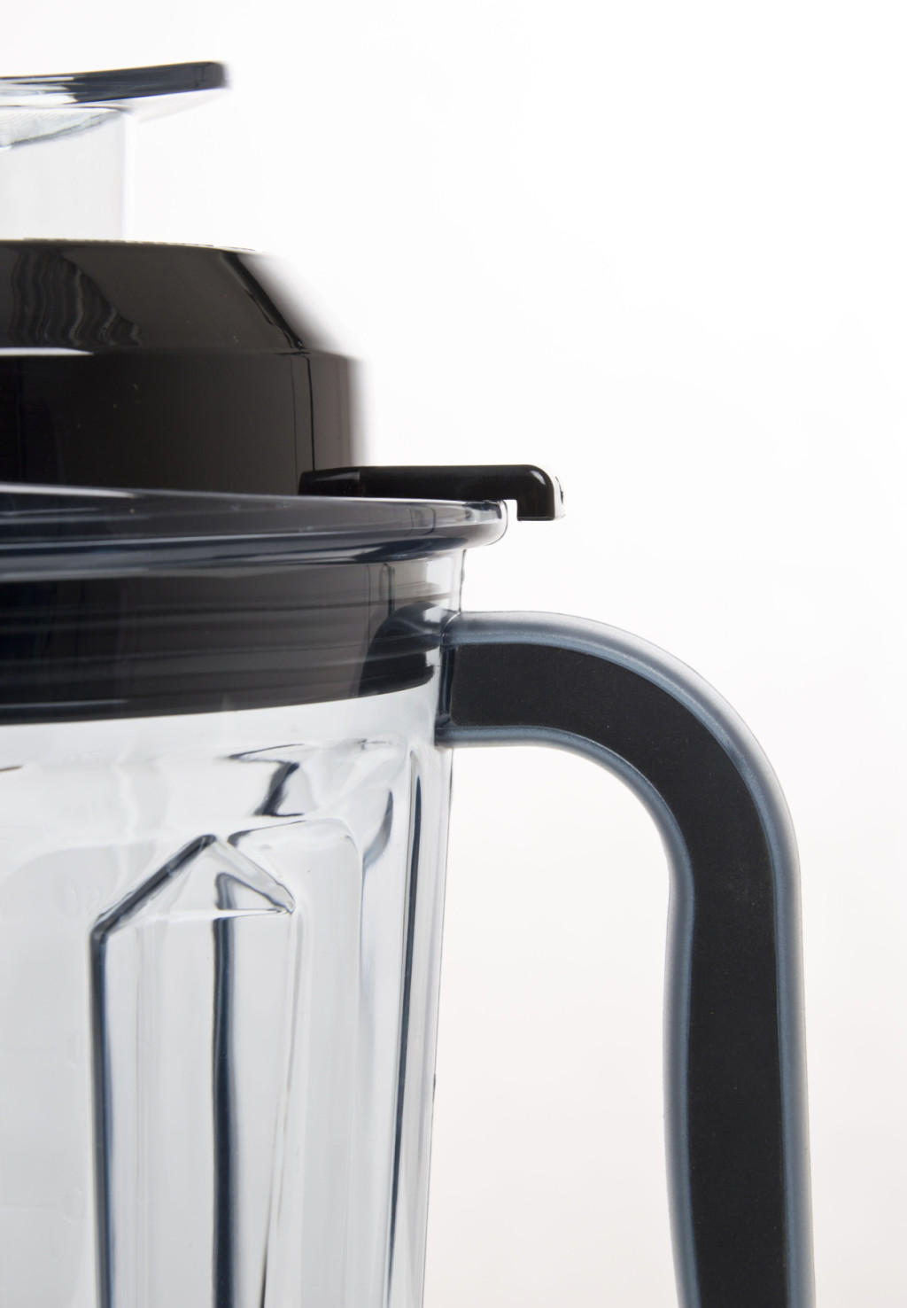 A G21 Perfect/Smart Smoothie Vitality, Perfection és Excellent turmixgépekhez való tartalék tartály mérőskálával 2,5 l térfogatú, 1 kg súlyú és 35 x 17 x 17 cm méretű. A tartály új pengével, nagy és kis fedővel és betolókarral van felszerelve.