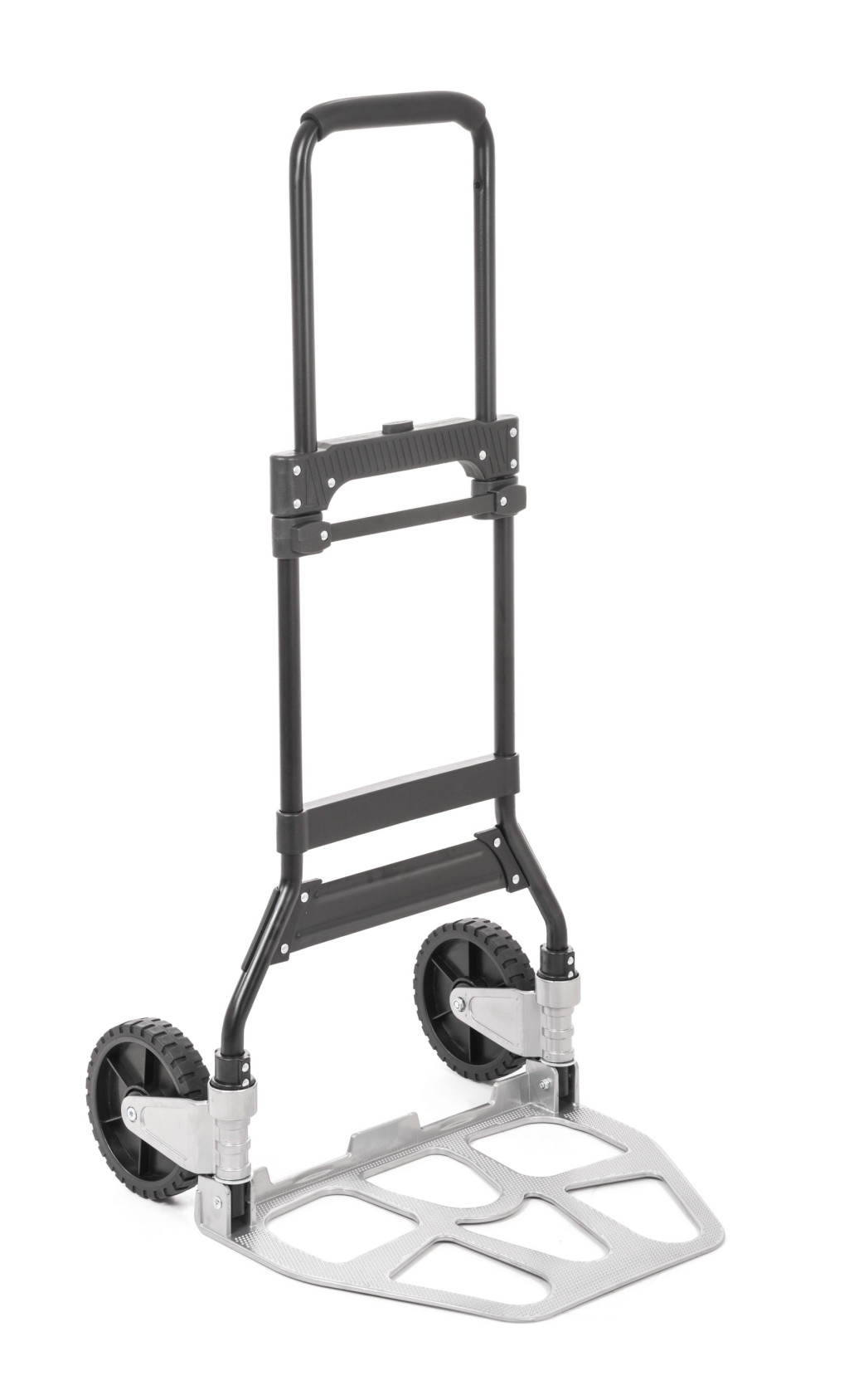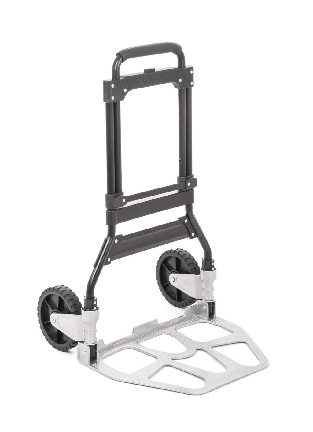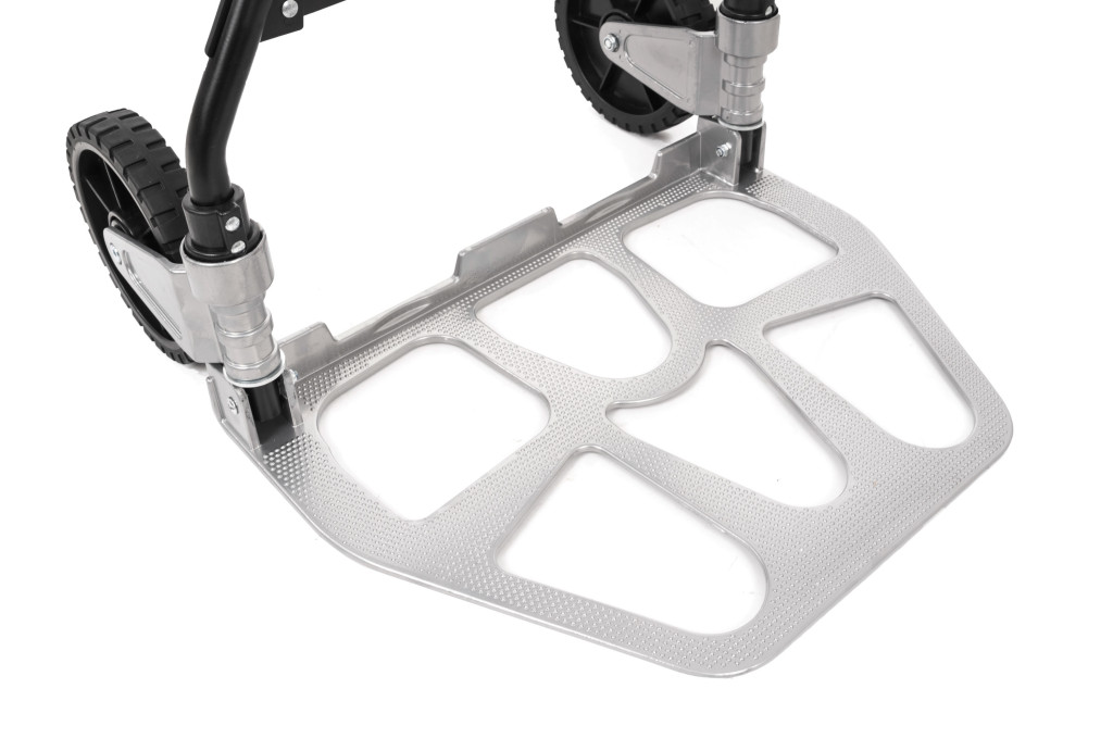 A kézikocsi szerkezete alumíniumból és acélból készült, így ellenáll a nehezebb igénybevételnek és a mindennapos használatnak. A nagy 17 cm-es kerekek különféle felületeken is jól működnek. A behúzható fogantyú megkönnyíti a szállítást és a tárolást. Összecsukva mindössze 48,5 × 83 × 6 cm méretű, súlya pedig csak 6,1 kg, így akár autó csomagtartójában is könnyedén elfér.