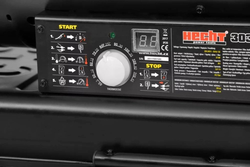 A Hecht 3038 egy mobil közvetlen fűtőelem ventilátorral, amely alkalmas olyan helyiségek gyors és viszonylag olcsó fűtésére, mint például épületek vagy egyéb olyan helyiségek, ahol fűtésre van szükség bonyolult telepítés nélkül.
