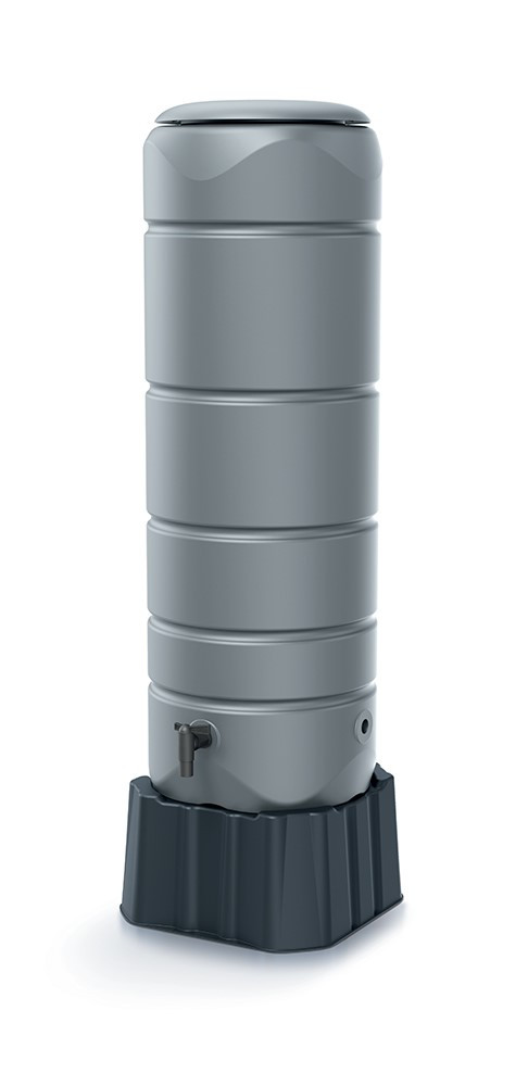 Esővíztartály, térfogat 110 l, kiváló minőségű PE anyagból, fagyálló, a tető ereszcsatornához csatlakoztatható, oldalsó csatlakozás a csap egyszerű felszereléséhez (tartozék), stílusos kialakítás.