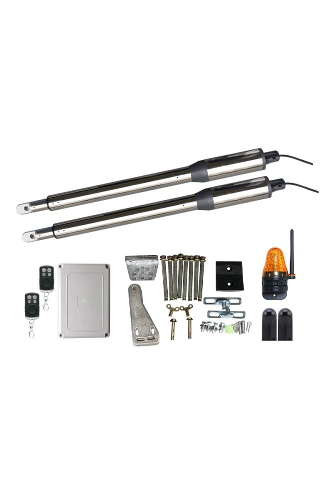 Meghajtás 2 szárnyú kapukhoz, maximum 2,5 m hosszúságig, kapusúly max. 220 kg, dugattyú kitolási sebessége 16 mm/s, erő 2000 N, lágyindítás, csendes működés.