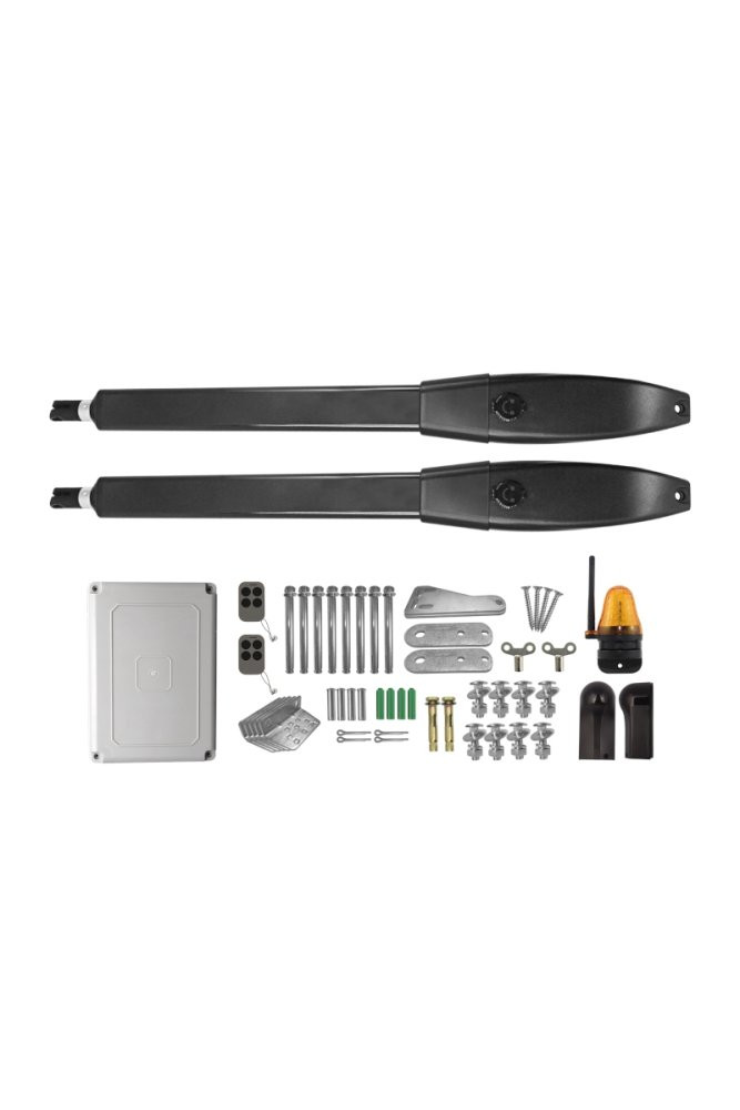 Meghajtás 2 szárnyú kapukhoz, maximum 3 m hosszúságig, kapusúly max. 300 kg, dugattyú kitolási sebessége 16 mm/s, erő 2000 N, lágyindítás, csendes működés.