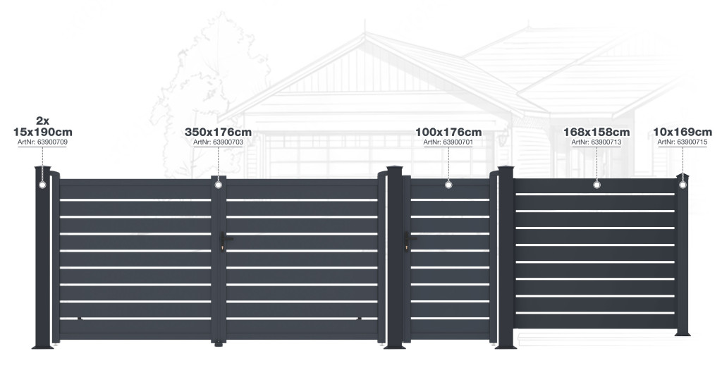 • A modern G21 Reno alumínium kapuk és kerítésoszlopok a hosszú élettartam és az időjárásállóság érdekében a robusztusságot a könnyedséggel ötvözik.