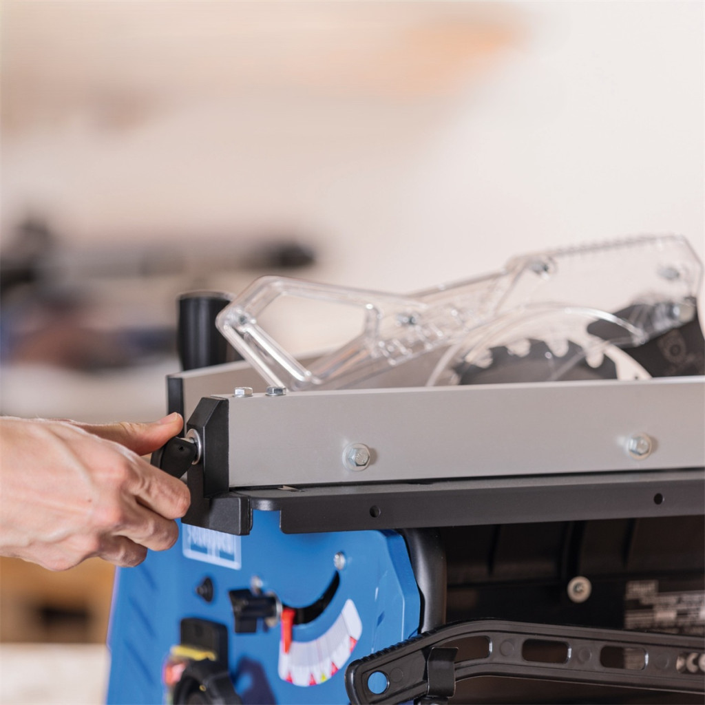 A vágási magasság kényelmesen állítható a kézikerékkel, ami lehetővé teszi a pontos alkalmazkodást az anyaghoz és az adott munkatípushoz.