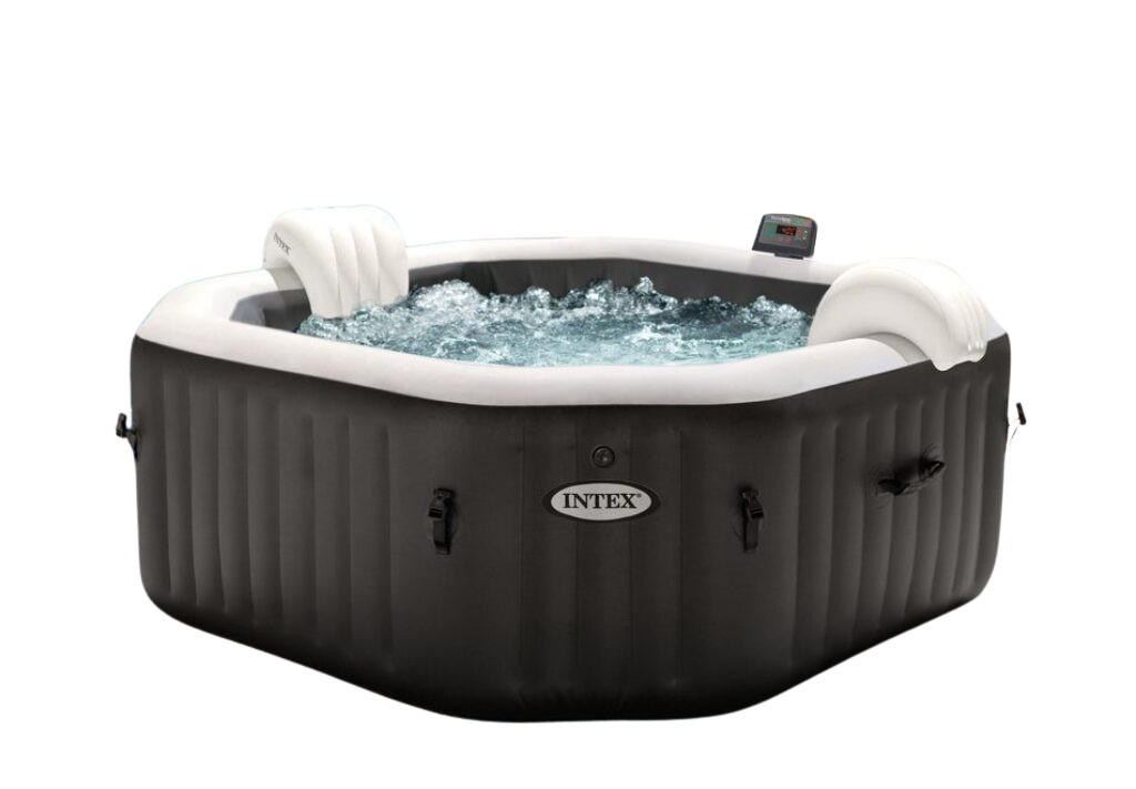 Felfújható pezsgőfürdő 4 fő részére, vízlágyítás a HWS-nek köszönhetően, SWT rendszer szolinátorral, 4 hidromasszázs fúvóka, 120 légfúvóka, távvezérlés az alkalmazásnak és a Wi-Fi modulnak köszönhetően, állítható hőmérséklet.