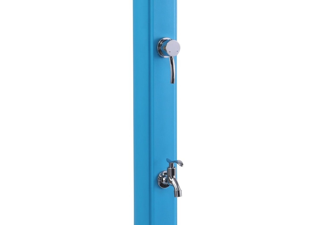 Kültéri használatra tervezett napelemes zuhany, biztosítja a szükséges higiéniát fürdés és úszás előtt a medencében, zuhanyfej csuklóval a pozícióváltáshoz, állítható vízhőmérséklet, ökológiai fűtés napenergiával, 20 l víz tárolására alkalmas.