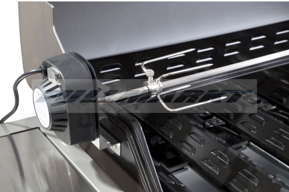 A nyárs egyik oldalán egy levehető műanyag tartóval van ellátva, amelyen egy praktikus szem van a rögzítésre. A másik oldalán a motor található szintén műanyag fedéllel, melyen található a ki-és bekapcsoló gomb. A 230 V feszültségű motort egyszerűen csak csatlakoztatni kell az áramkörbe a 125 cm-es tápkábellel. A motor segítségével a nyárstű percenként kb. 2x fordul, hogy az étel ne égjen oda és egyenletesen süljön.