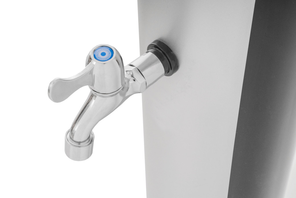 Napenergiával működő zuhany, 40 l térfogat, vízmelegítés 60 °C-ig, hőmérséklet-szabályozás karos csapteleppel, praktikus csap a láböblítéshez. Csatlakozás a vízellátáshoz kerti tömlővel, egyszerű telepítés.