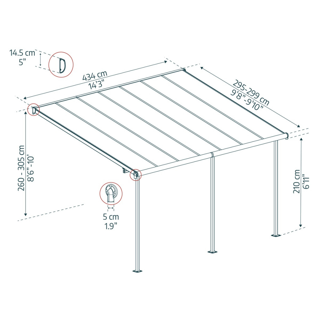Palram Capri 4200 antracit/szürke 3 x 4,25 pergola, terasztető (426x286cm) akár összeszereléssel is, +ajándék 80000Ft értékű****wellness utalvány