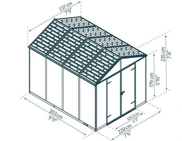 • Az alap kerti tároló két méretben elérhető: 228 x 237 cm vagy 304 x 237 cm
