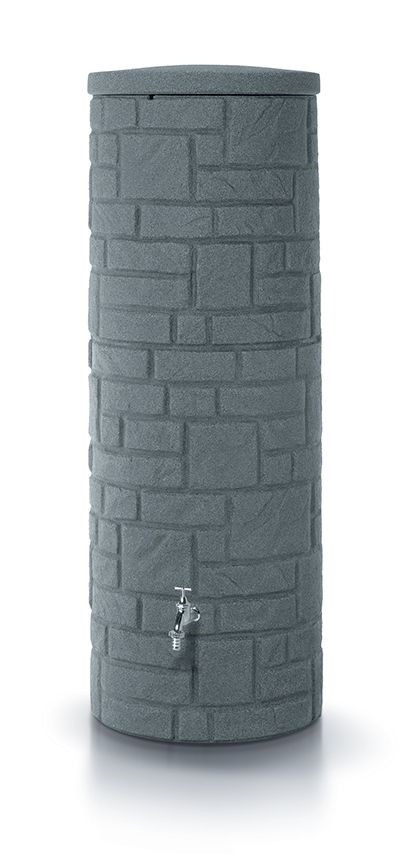 360 literes esővízhordó. Valódi kőfal kialakítás. Csap vagy kerti tömlőcsatlakozó hozzáadásának lehetősége. Fentről nyíló fedéllel. Méretek (szé x ma x mé): 60 x 165 x 60 cm.