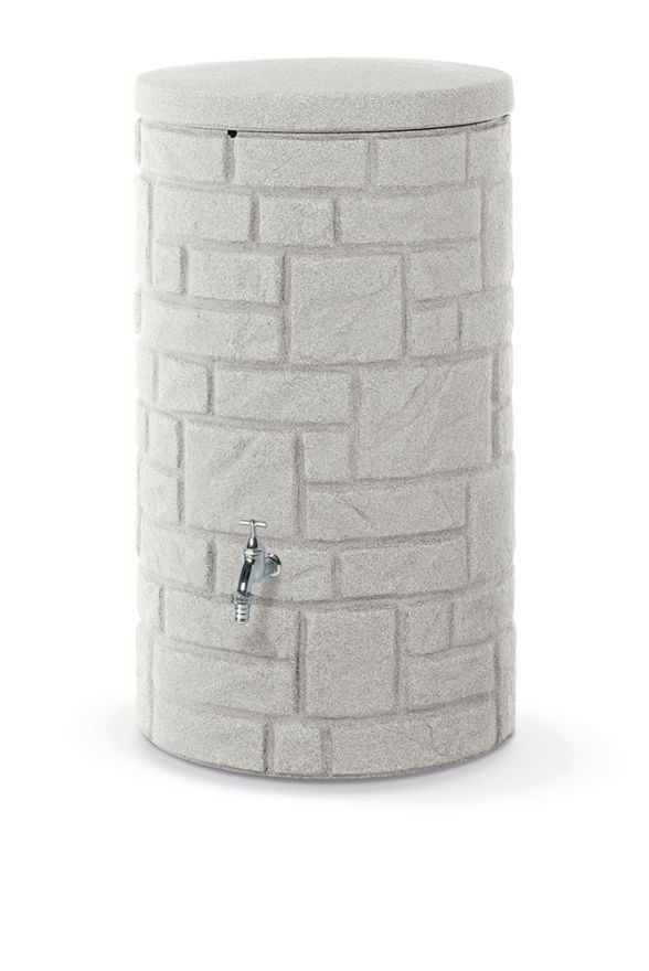 230 literes esővízhordó. Valódi kőfal kialakítás. Csap vagy kerti tömlőcsatlakozó hozzáadásának lehetősége. Fentről nyíló fedéllel. Méretek (szé x ma x mé): 60 x 105 x 60 cm