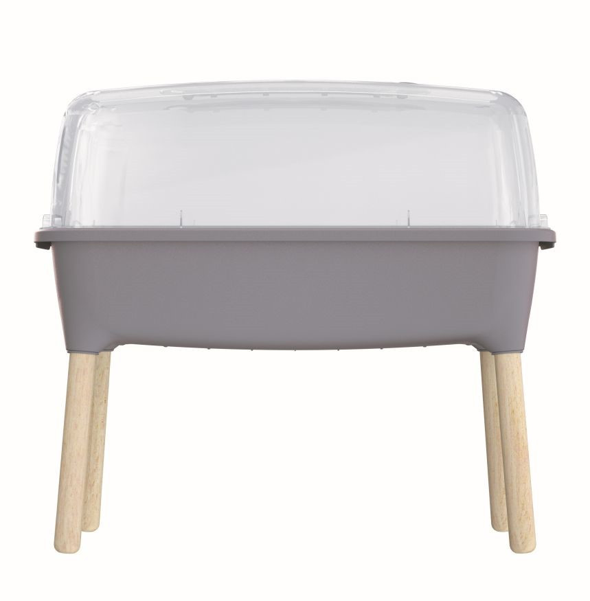 Kaspó átlátszó fedéllel, alkalmas kültéri és beltéri használatra, lehetőség melegágy kialakítására, műanyag és fa, 2,606 kg, méretek (h x sze x ma): 78 x 37,9 x 79,5 cm, szürke szín.