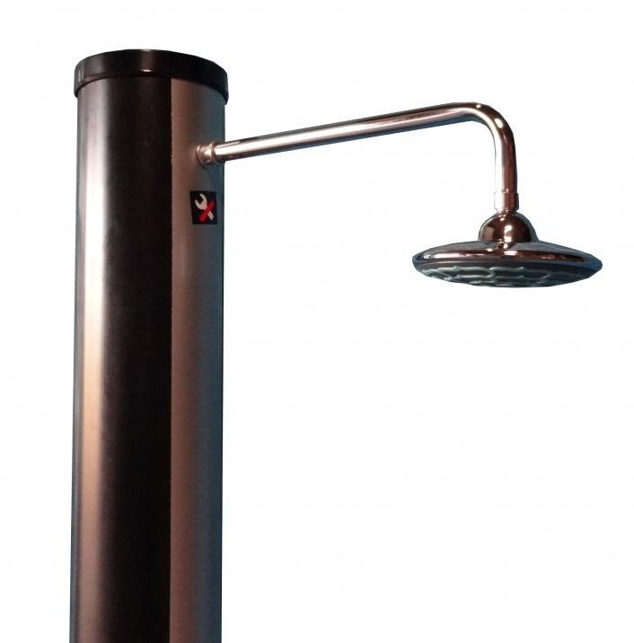 Sprcha je vyrobená z čierneho UV odolného plastu. V tele zariadenia s výškou 2,15 m je zabudovaný pákový kohútik pre reguláciu teploty vody, separátny kohútik na umývanie nôh a sprchová hlavica v predĺženom variante. Samonosná konštrukcia sprchy slúži zároveň ako zberný zásobník vody a solárny kolektor.