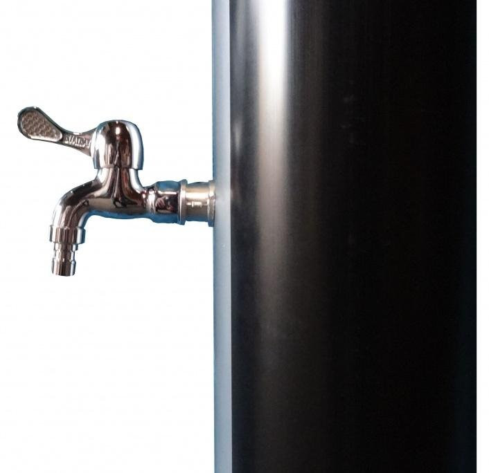 Čiernostrieborná solárna sprcha s nádržou na 38 litrov teplej vody bude príjemným doplnkom na záhradu alebo k bazénu. Pomocou regulácie si navolíte tú správnu teplotu vody, ktorá vás osvieži, alebo aj zahreje.