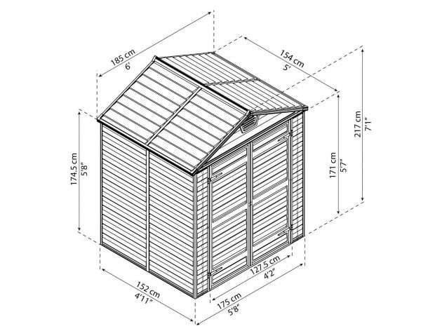 Kerti ház, Szerszámtároló, padlózattal, 153x185 cm, polikarbonát, Palram Skylight 6x5, antracit, + 40.000 Ft-os wellness utalvány